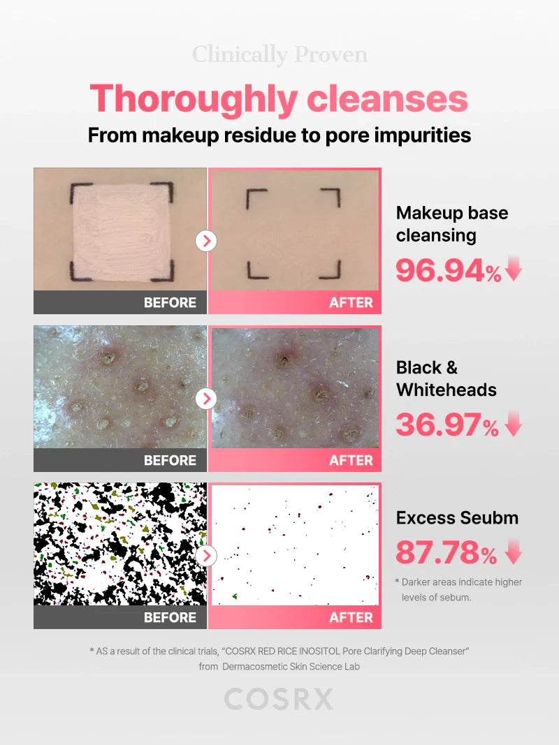 • Helps clear excess sebum, blackheads, and whiteheads for visibly unclogged pores.